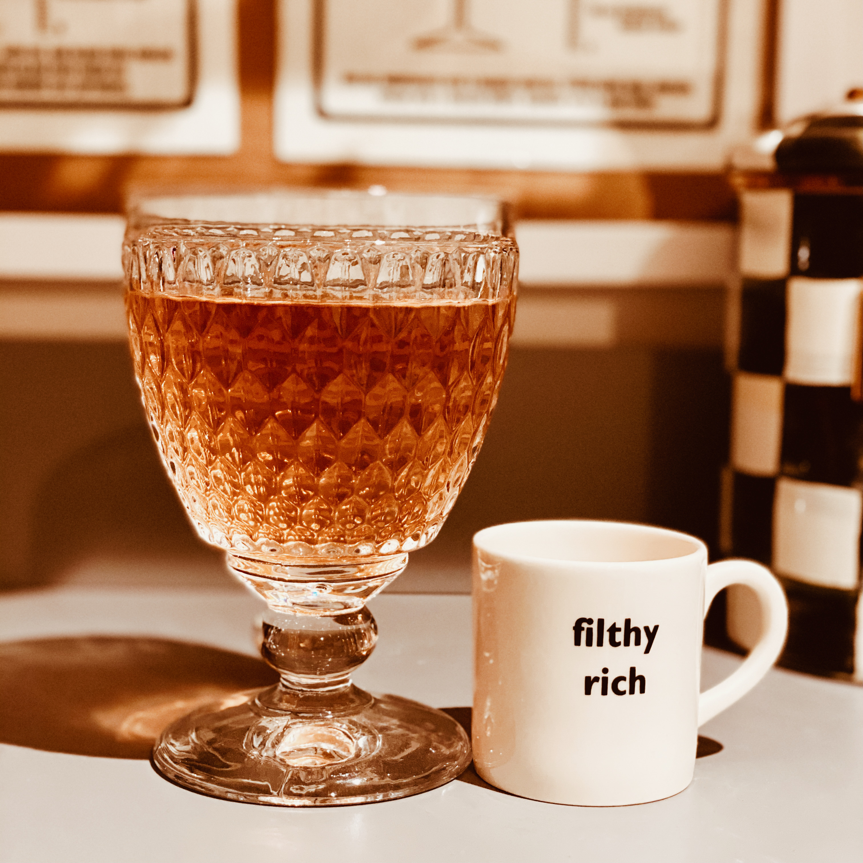 Sparkling apple juice is best served with aged Scottish whisky. I discovered the joys of this recently, and because its rosé season, top it off with a little bit of it and you have yourself one fine cocktail.